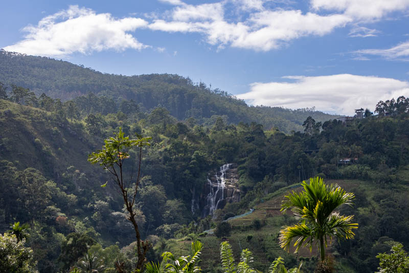 Immer wieder gab es von der Bahnstrecke aus schöne Ausblicke auf einen Wasserfall in der Ferne: