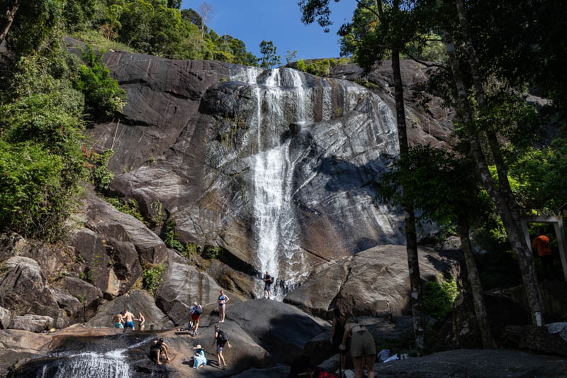 Per Grab (das asiatische Uber) ging es zuerst zum Fuß der Seilbahn. Von dort geht der Wanderweg los. Erster Zwischenstopp dieser schöne Wasserfall: