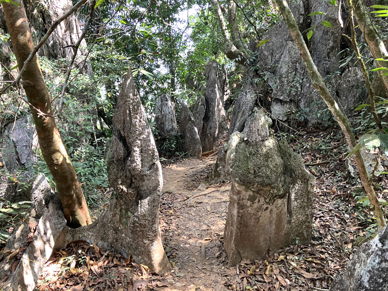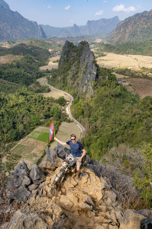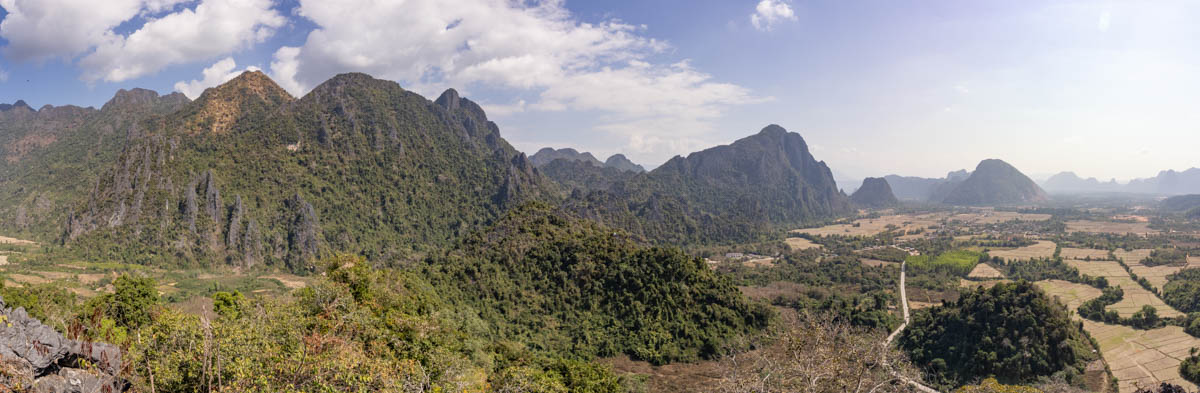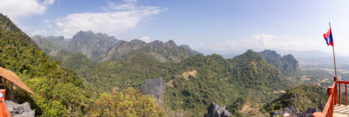 Unseren letzten vollen Tag in Vang Vieng wollten wir gut nutzen. Wir sind wieder mit Leihfarrädern losgezogen. Diesmal ging’s zum Nam Xay Ausguck. Der Weg nach oben war, aufgrund heftiger Erosion, ziemlich abenteuerlich (Treppen werden aber gerade gebaut). Und natürlich wieder richtig schön steil. Hier mag man’s wohl kurz und heftig.