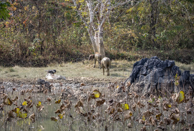 Mit dem Fahrrad ging’s dann weiter durch das Tal, tiefer in’s Hinterland. Wir sind an (trockenen) Reisfeldern, vielen Kühen und toller Landschaft vorbeigefahren: