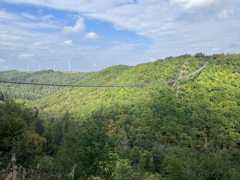 Die, bis 2017, längste Hängeseilbrücke Deutschlands steht in Mörsdorf in Rheinland-Pfalz. Die Gegend rund um die Geierlay-Brücke fällt jetzt nicht gerade durch steile Berge auf: