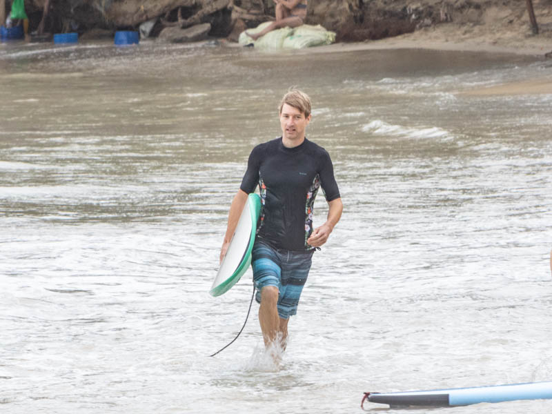 Am Tag darauf war die Sicht beim Turtle Point immer noch schlecht, also sind wir stattdessen mit dem Bus 3km zum Hiriketiya Beach gefahren. Das ist eine schöne Bucht, deren Strand komplett von Surfschulen dominiert wird. Das Wasser ist voller Surfanfänger.