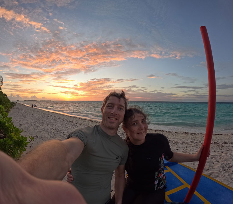Dhigurah ist eine schmale, langgezogene Insel. Wir sind sie einmal der Länge nach abgelaufen. Als wir am Ende waren gab es einen schönen Sonnenuntergang: