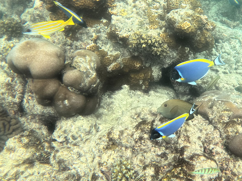 Nach der etwas hektischen Schnorchelei im Rahmen der Bootstour gestern, haben wir uns dazu entschieden heute einfach vom Strand aus loszuschnorcheln. Da konnten wir unser eigenes Tempo fahren und Fische gab es auch viele zu sehen: