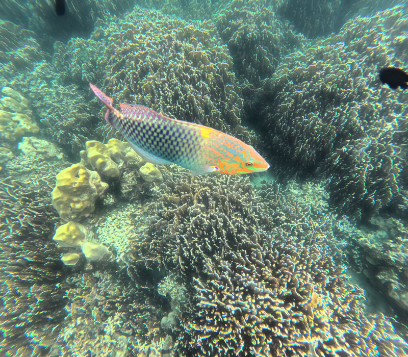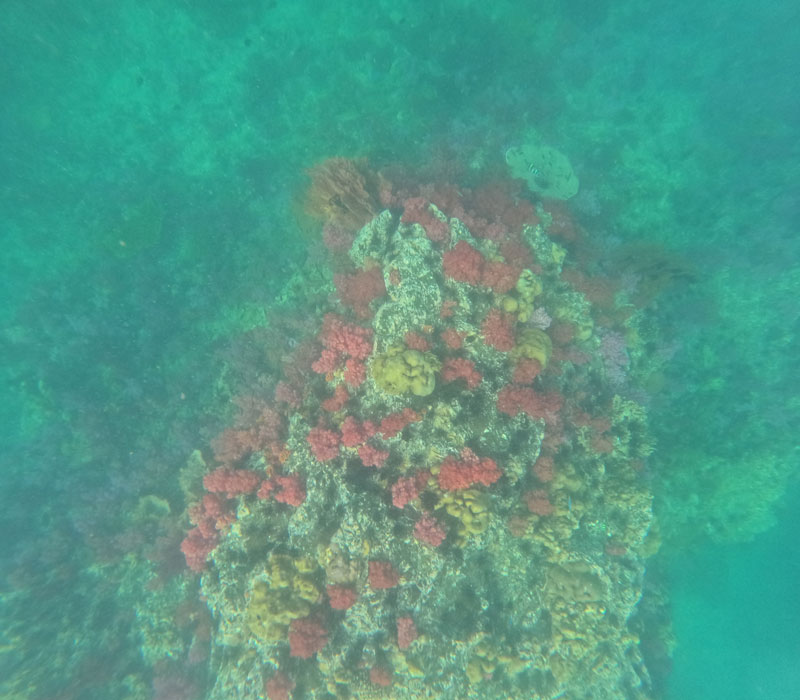 Da wir nur zwei Nächte hier sind, hatten wir uns für heute gleich eine Schnorcheltour gebucht. Das Gebiet um die Insel ist ein Nationalpark. Erste Station war die “Seven Color Coral”: