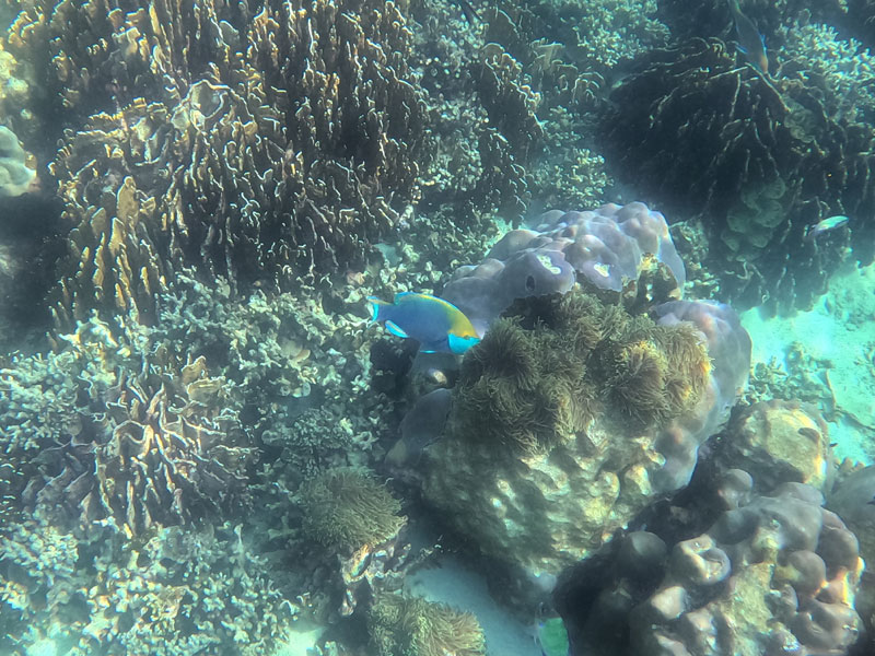Beim nächsten Stopp konnten wir einfach raus aus dem Boot und ganz normal schnorcheln. Die Sicht war gut und es gab viele Fische in knallbunten Farben: