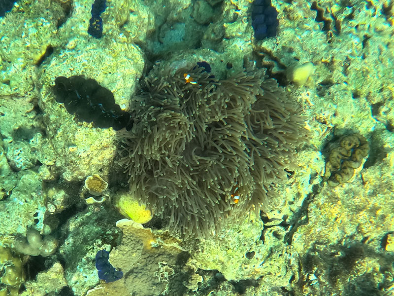 Der letzte Schnorchelhalt war nochmal in einer anderen Bucht und hier haben wir u.a. die winzigen Clownfische entdeckt: