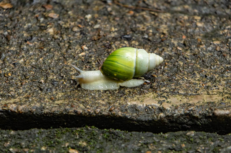 Für heute war schlechtes Wetter angekündigt, also ideal um nochmal eine Höhle zu besuchen. Die Paradise Cave ist eine der Highlights hier und so haben wir uns zum Fuße ihres Eingangs begeben, wo eine Schnecke mit grünem Haus bereits auf uns wartete: