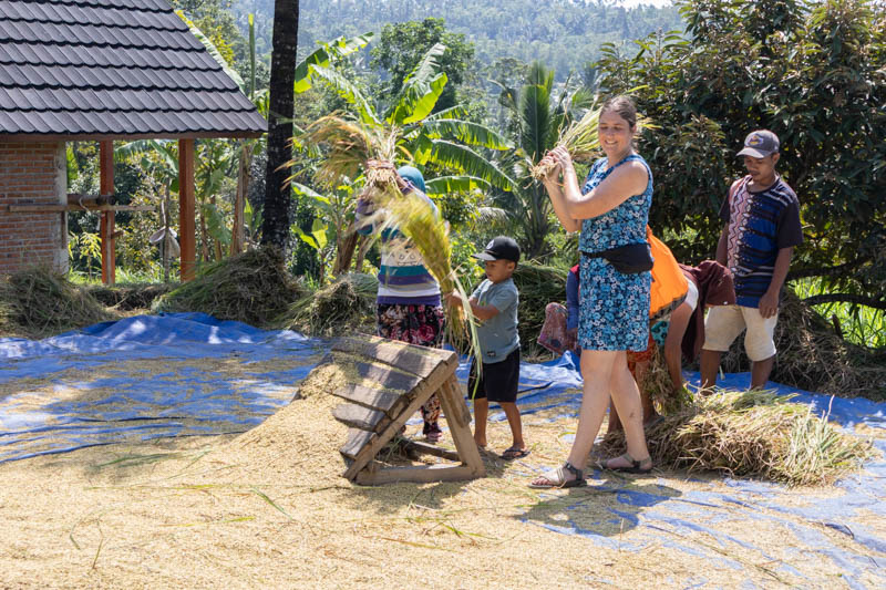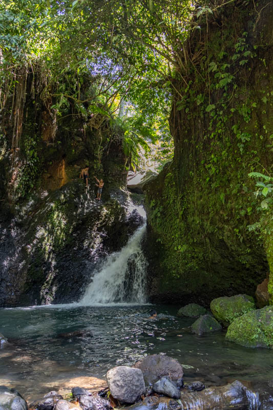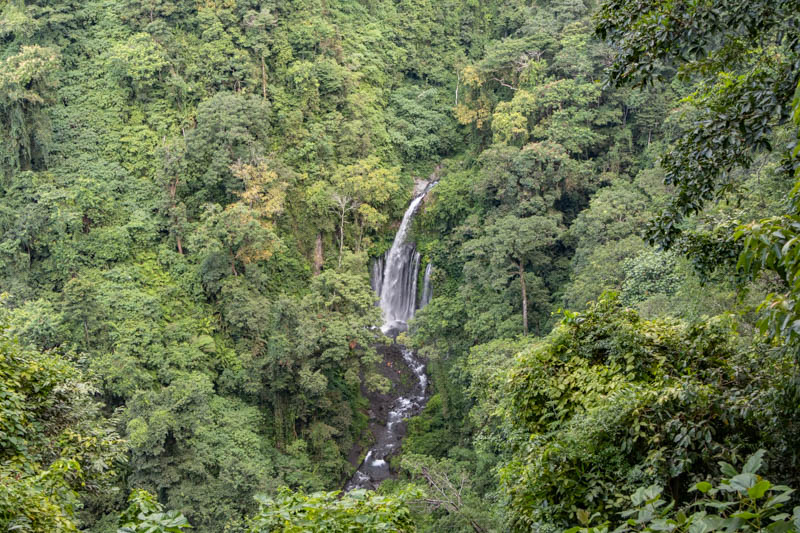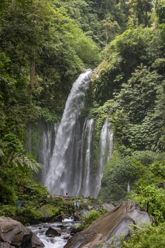 Neben dem Vulkan Rinjani sind auch die Wasserfälle in Senaru ein Besuchermagnet. Gegen einen kleinen Obulus von 20.000 IDR p.P. (1 EUR) kann man zu den Fällen wandern. Über ein paar Stufen sind wir zu Sendang Gila, dem ersten Wasserfall, gekommen: