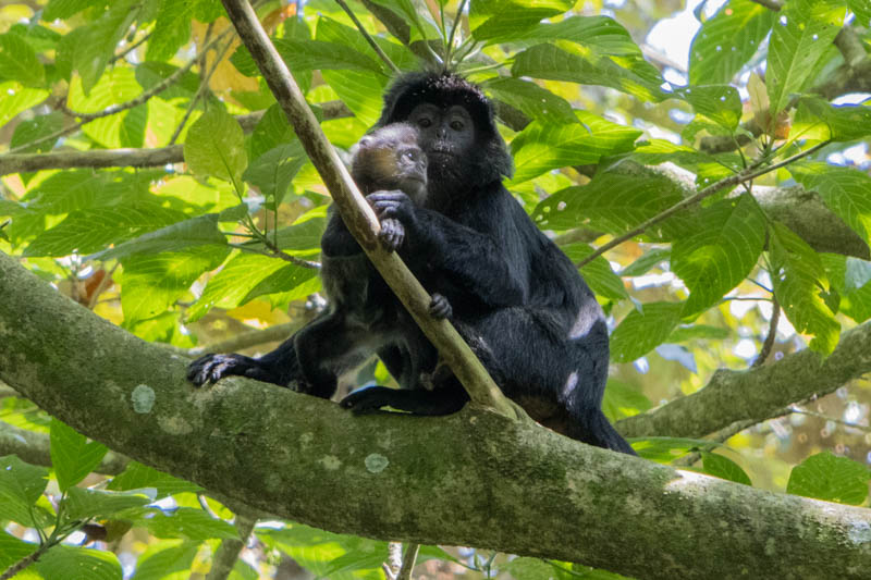 Wir haben aber noch zwei andere Affenarten gesehen. Eine sehr kleine und dann noch diese schwarzen (vermutl. schwarze Haubenlanguren):