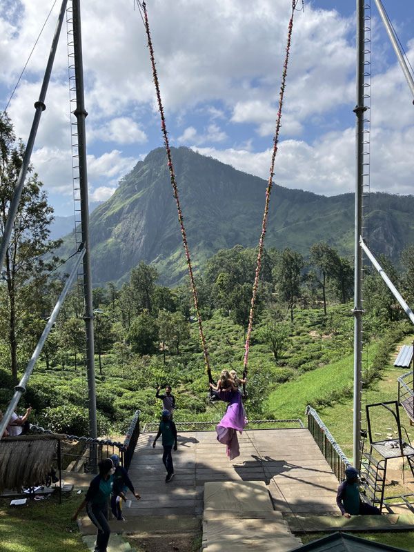 Am Fuße des Little Adam’s Peak ist ein Resort, das den Weg zum Gipfel mit allerlei Erlebnis-Geschäften gepflastert hat. Das Beste fanden wir die riesen “Insta-Schaukel”. Als Paar konnte man für ca. 50 EUR (wehendes Kleid und Blumenkranz inklusive) ein / zwei Minuten schaukeln und dabei Fotos von sich machen lassen: