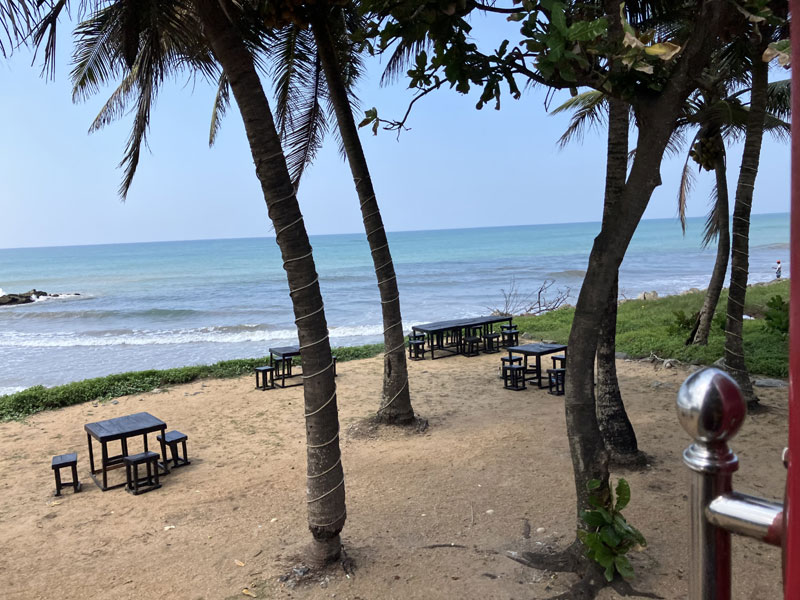 Der Zug ist in vielen Abschnitten praktisch auf dem Strand gefahren (hier kurz vor Colombo):