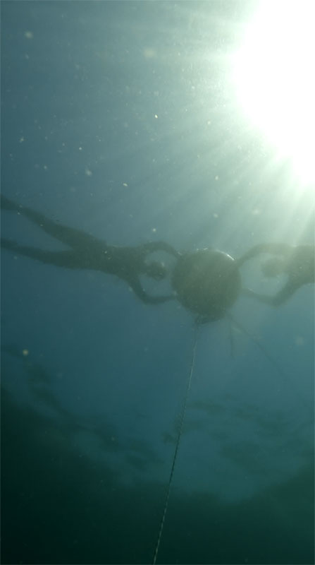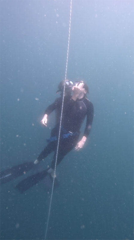 Besonderes Augenmerk liegt dabei auf Sicherheit, Entspannung und Druckausgleich. Ich war etwas besorgt dass es vielleicht ein bisschen langweilig wird an einer Leine runter und wieder hoch zu tauchen. Völlig zu unrecht: es hat sehr viel Spass gemacht langsam immer weiter runter zu kommen und dabei seine Technik zu verbessern. Abschließend haben wir noch Übungen im Schwimmbecken gemacht. Leider war das Meerwasser heute sehr trübe. Vielleicht wird’s ja morgen besser.