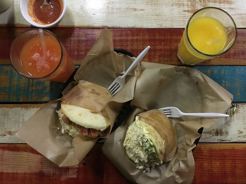 Am Abend konnten wir dann, fernab der Touri-Restaurants und Pubs, einen ersten Vorgeschmack auf die Küche von Panama in ein paar lokalen Fressbuden bekommen. Wir haben Arepas gegessen. Das sind Maisfladen, die man z.B. mit irgendwas füllen kann: