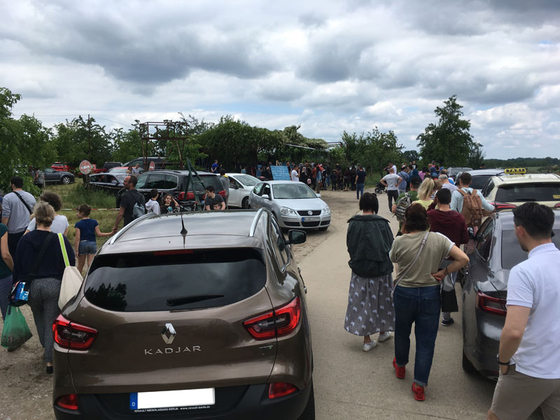 Beim Hof angekommen trauten wir unseren Augen kaum. Auf dem Parkplatz war ein riesen Trubel und vor dem Eingang eine lange Schlange: