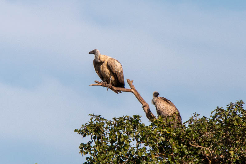 Unsere erste Sichtung waren zwei Geier oben in einem Baum: