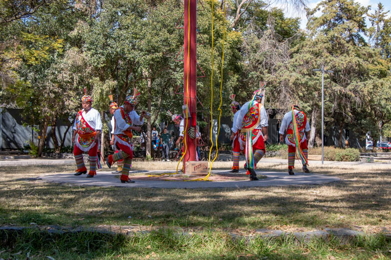 Heute ging’s zu den Voladores beim Museo Nacional de Antropología. Diese führen eine spezielle indigene Zeremonie auf. Erst haben sie um einen Pfahl getanzt: