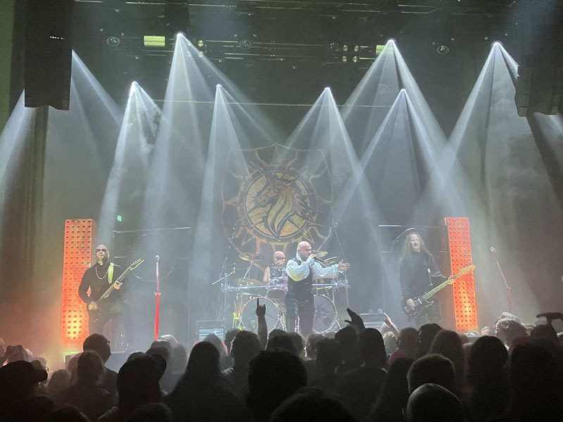 Dass der Sänger noch eine “Laser Brille” aufhatte, hat dann im Verlauf der Show Sinn ergeben. Sie haben einfach alle Klischees des Powermetal bedient und anstatt leichtbekleideter Kriegerinnen und Vikinger-Raubzüge zu besingen wurden hier Ritter, Dinos, Ninjas, Burgen, Laser und Tokyo alle in einen Topf geschmissen und ordentlich umgerührt. Das ganze war dermaßen übertrieben und absurd dass es eigentlich nur noch übertroffen wurde von der guten Laune, die die Band versprüht hat: