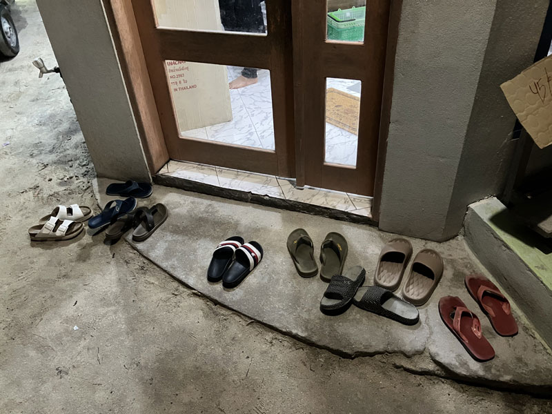 Es scheint hier üblich zu sein die Schuhe vor betreten eines Hauses auszuziehen, auch bei Restaurants und Geschäften:
