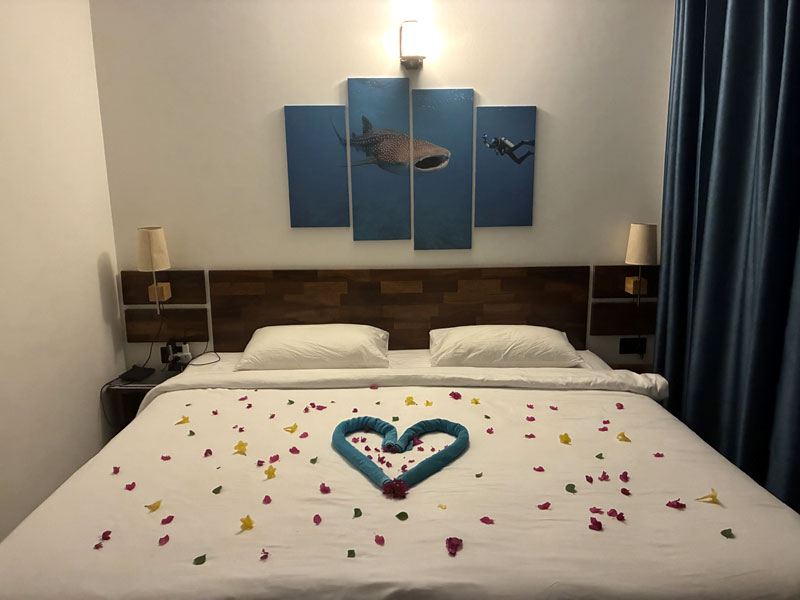 Als wir nach dem Abendessen in’s Hotelzimmer kamen, war es ganz romantisch hergerichtet: