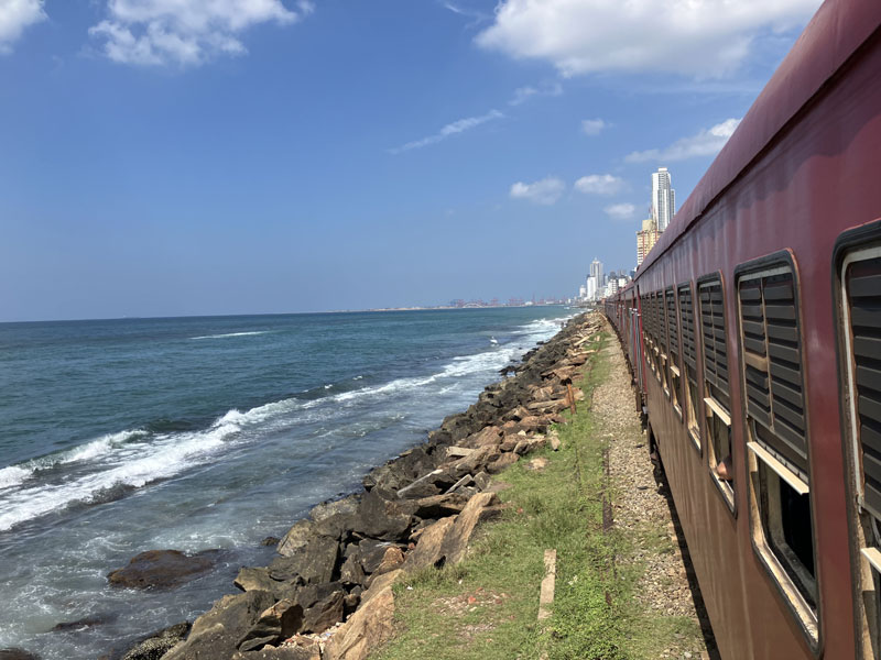 Der Zug ist in vielen Abschnitten praktisch auf dem Strand gefahren (hier kurz vor Colombo):