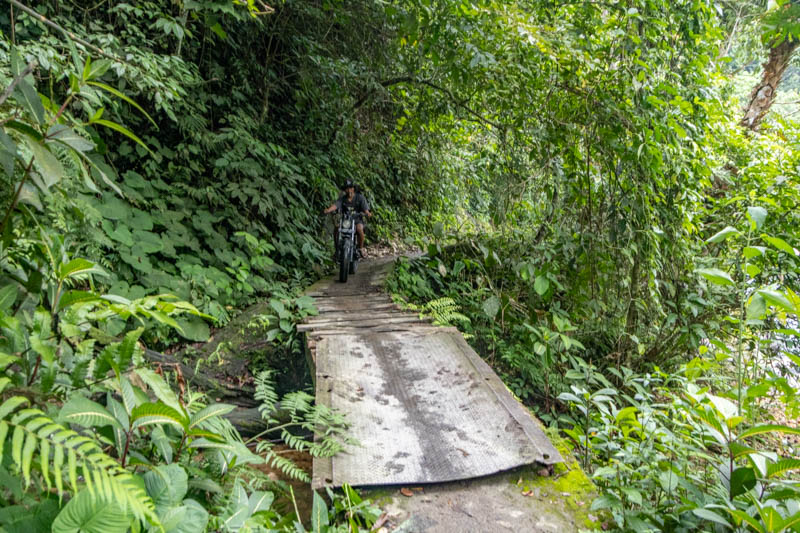 Es gibt mehrere Hängebrücken über den Fluss. Der Mittelverstärkung nach zu urteilen rollern die Leute auch hier drüber (wir haben allerdings nur Fußgänger gesehen):