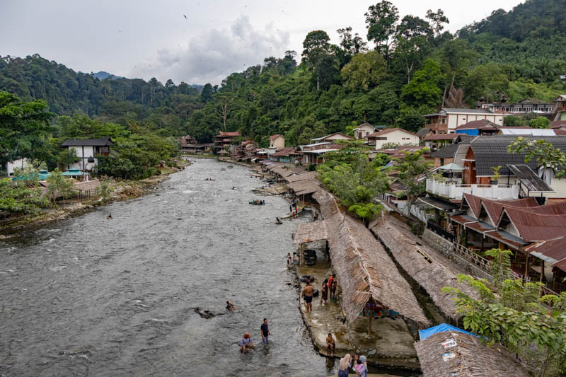 Heute wollten wir eigentlich zu einer Fledermaushöhle aber der Weg dorthin war überschwemmt. Also haben wir einfach ein bisschen das Dorf erkundet. Die Leute baden am Fluss oder lassen sich runtertreiben: