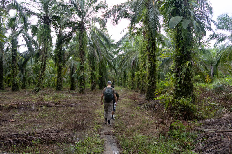 Zuerst geht es durch Palmölplantagen, in denen wir unseren zweiten Führer, Cipta, treffen: