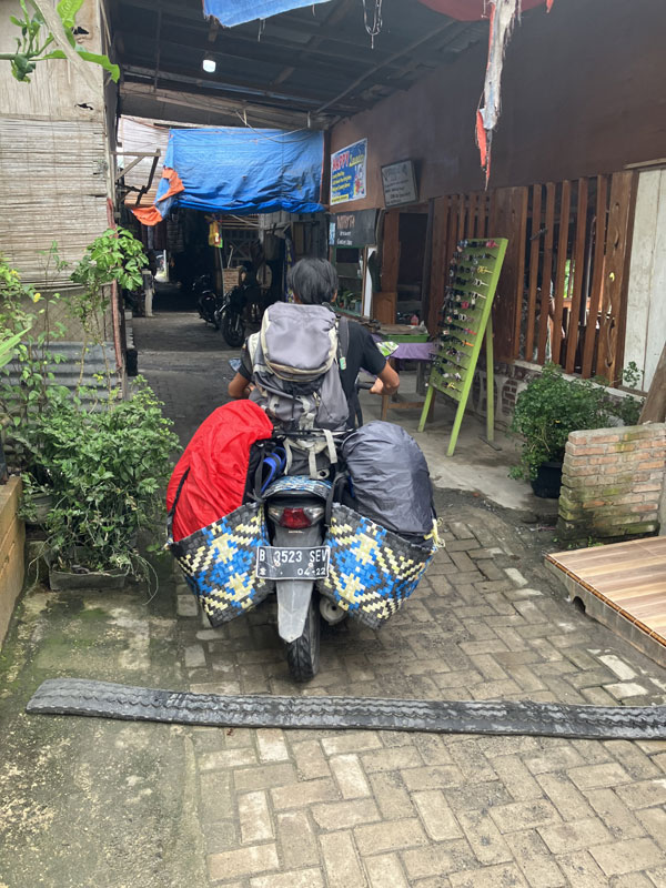 Auch unsere großen Rucksäcke wurden heute Morgen, dankenswerterweise, mit dem Roller zum Abfahrtsort transportiert: