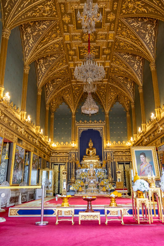 Drinnen durfte man Photos machen. Der Innenraum war deutlich kleiner wie im Smaragd-Buddha Tempel, aber trotzdem sehr beeindruckend: