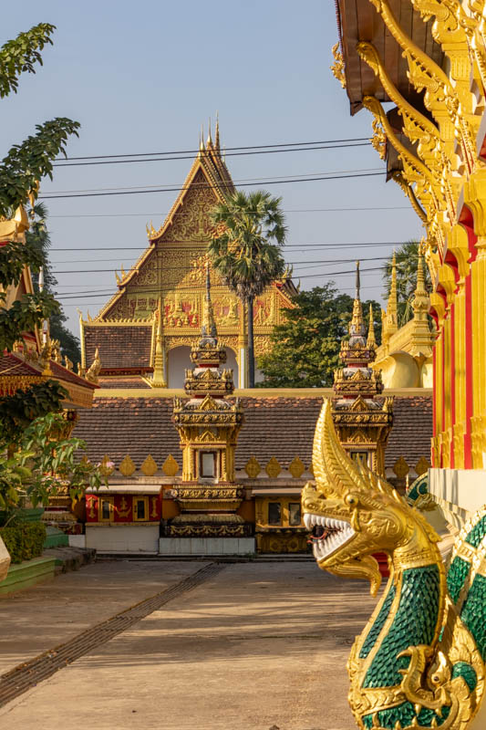 Das nächste Ziel auf unserer Router war Pakse, ca. 800km südlich von Vang Vieng. Für diese Strecke hatten wir einen Nachtbus eingeplant. Warum ich bei “Nachtbus” leicht nervöse Zuckungen bekomme, kann man hier nachlesen. Aber erstmal der Reihe nach. Erstmal ging es von Vang Vieng mit dem Minibus nach Vientiane, wo wir ca. sechs Stunden Aufenthalt hatten. Genug Zeit, um noch einen Tempel anzuschauen. Wir haben uns für den “Pha That Luang” entschieden: