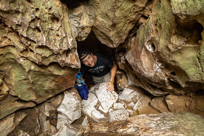 Im Berg sind relativ viele Höhlen. In einigen von ihnen wurden Tempel errichtet, andere dienten als Lazarett während des Vietnamkriegs. Wir haben die Höhlen erkundet, was teilweise recht eng und abenteuerlich war: