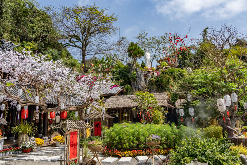 Fast übersehen hätten wir die Tu Tam Pagode. Sie liegt ein wenig abseits und man muss schon wieder ein paar Stufen den Berg heruntersteigen um sie richtig zu sehen. Aber es lohnt sich auf jeden Fall: