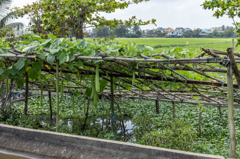 Neben dem ganzen Reis werden hier auch andere Pflanzen angebaut. Hier hat jemand wohl Zucchinis am wachsen die prächtig gedeihen: