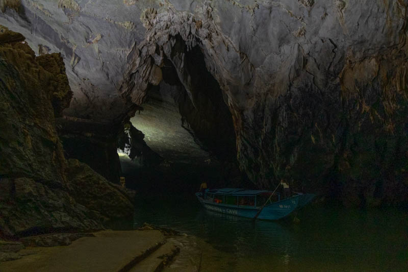 Einfach zugänglich für Touristen ist die Phong Nha Höhle und so haben wir mit der auch angefangen. Am Bootsanleger gibt’s Eintrittskarten für die Höhle sowie den Bootsfahrschein. Die Bootsfahrt zur Höhle bot immer wieder schöne Blicke auf die Landschaft: