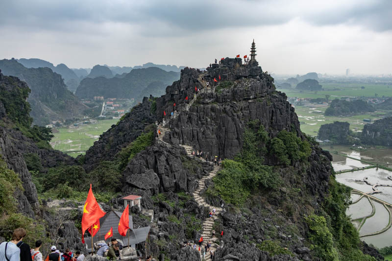 Am Hang Mua angekommen bezhalt man einen Eintritt von 100.000 VND (3,30 EUR) für das Besteigen des Berges. Dafür bekommt man für den Aufstieg schöne betonierte Stufen - ca. 500 an der Zahl. Wenn man dann oben ist kann man sich wie ein Sieger fühlen: