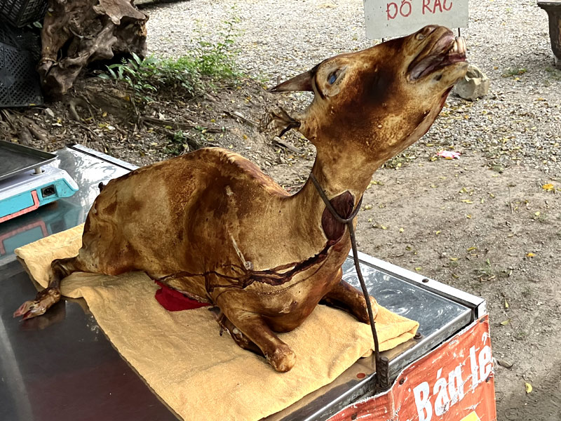In der Gegend hier haben wir relativ viel Ziegen gesehen. Und auch am Hang Mua waren sie fleissig am klettern um an die besten Blätter zu kommen: