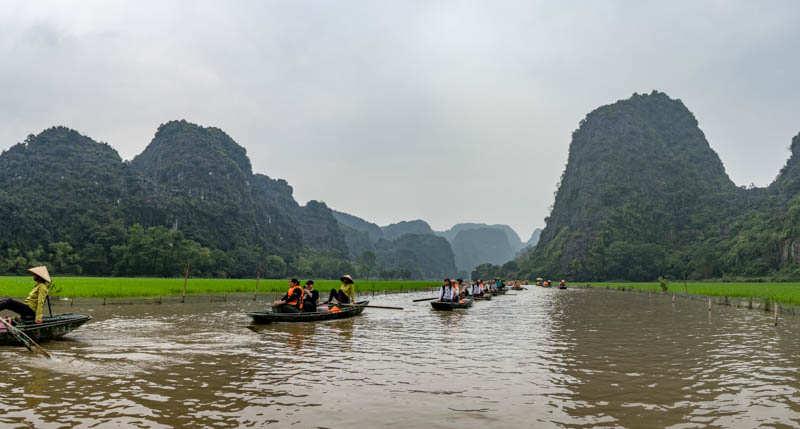 Von Tam Coc aus kann man Bootsfahrten durch die Karstlandschaft um Ninh Binh unternehmen. Wir hatten zwar gestern bei unserer Radtour schon jede Menge von der Landschaft gesehen, aber mit dem Boot ist ja nochmal anders. Also los geht’s!