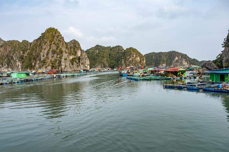 Das schwimmende Dorf liegt gerade vor dem Hafen von Cat Ba.