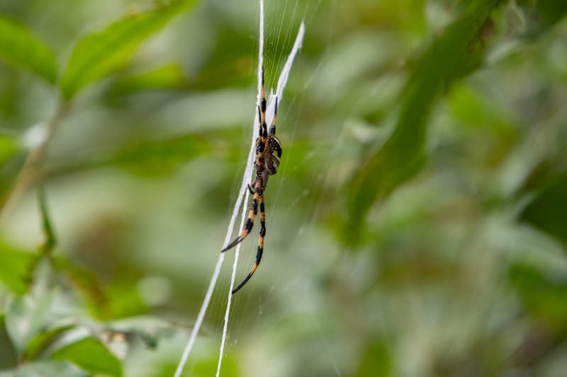 An einer Stelle ist mir ein “X” im Wald aufgefallen. Bei genauerem Hinsehen haben wir diese große Spinne dahinter entdeckt: