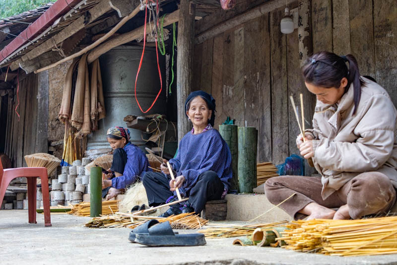 Auf der Heimfahrt haben wir noch einen Abstecher nach Phia Thap gemacht, ein kleines Dorf das für seine Räucherstäbchenherstellung bekannt ist. Vor fast jedem Haus sitzen Leute und spalten Bambushölzer mehrfach, bis sich daraus die kleinen Stäbchen ergeben: