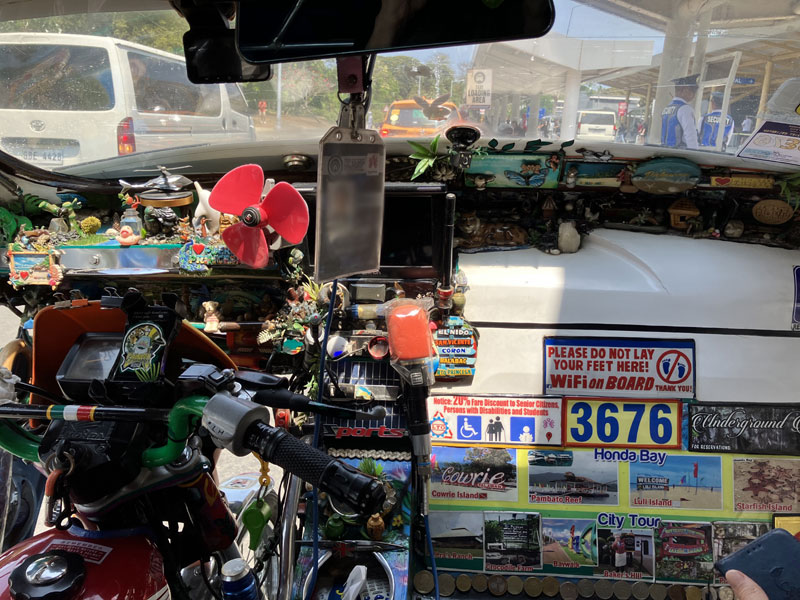 Auf Cebu waren wir dann nur eine Nacht. Am nächsten Tag ging schon unser Flug nach Puerto Princesa auf Palawan. Da es dort wohl noch kein Grab (das asiatische Uber) gibt, mussten wir auf ein Tuktuk zurückgreifen. Das Gefährt war mit sehr liebevollen Details gestaltet: