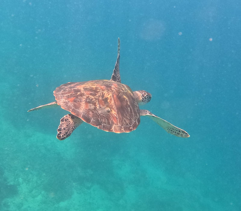 Ein Höhepunkt unseres Trips heute waren die Schildkröten. Zuerst haben wir eine Karettschildkröte gesehen: