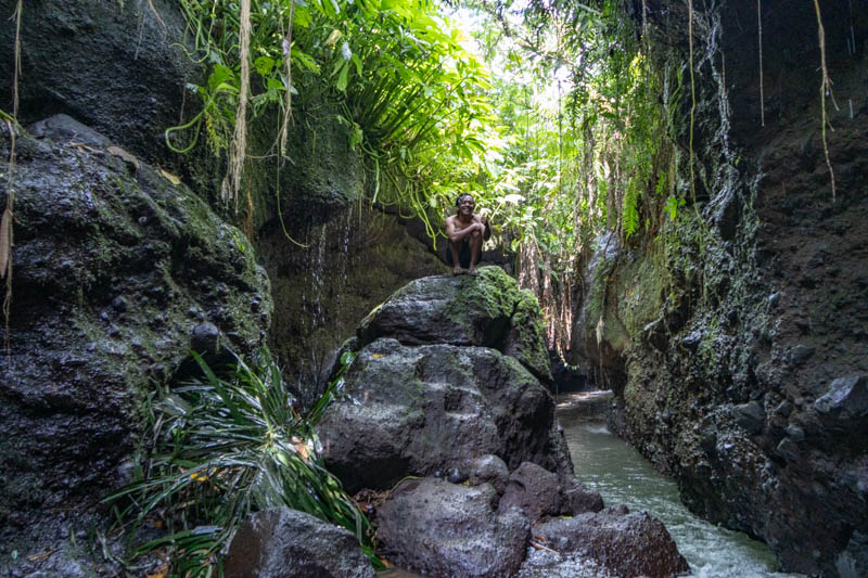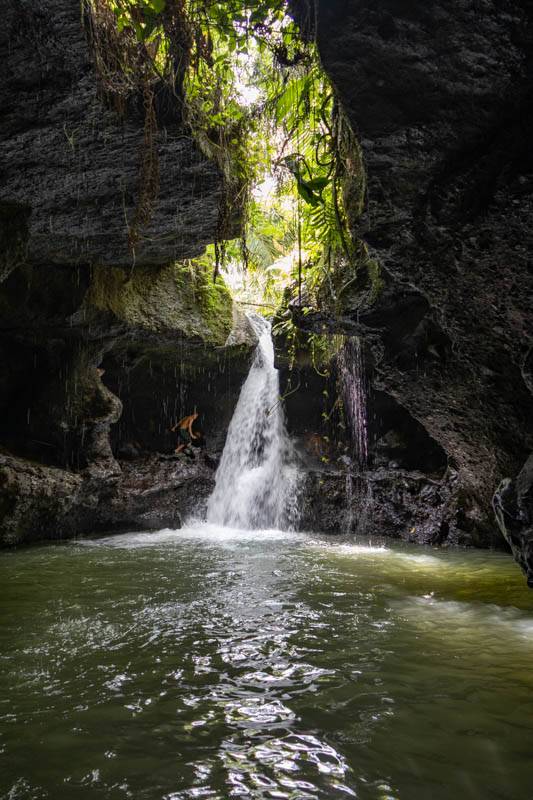 Der zweite Wasserfall war in einer Art Erdspalte. Um dorthin zu kommen mussten wir über abenteuerliche Stege laufen, die jedoch erstaunlich gut gehalten haben. Dann ging’s noch ein Stück durch den Fluss und schon waren wir beim Wasserfall: