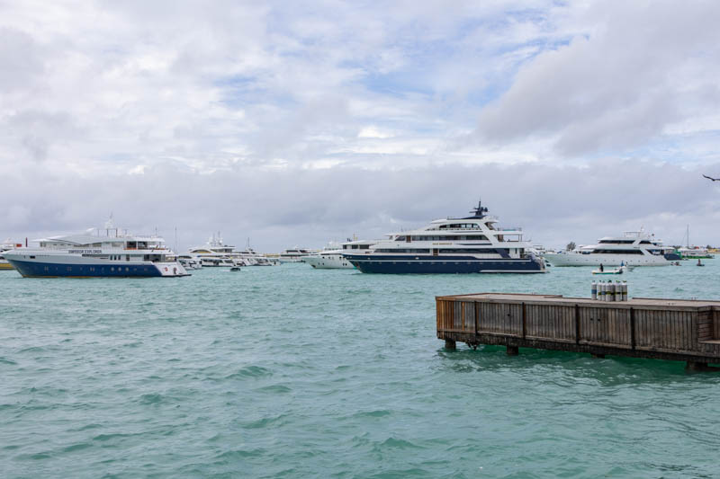 Es sollte um 8:00 losgehen. Aufgrund (immer noch) schlechten Wetters hat sich das Ganze nach hinten verschoben. Normalerweise kommen Dronen bei der Suche nach den Tieren zum Einsatz. Bei Regen können diese aber nicht fliegen und so waren wir heute ein bisschen im Nachteil (es wurde aber ab der Hälfte besser). Als es dann nach fast zwei Stunden eine Sichtung gab, musste alles ganz schnell gehen: Flossen und Brille an und ab in’s Wasser. Da Ursel und ich im Boot nicht nebeneinander saßen, war sie als erstes im Wasser und hat tatsächlich einen guten Blick auf den Walhai bekommen (ca. 3-4m lang). Ich hingegen hatte wohl Tomaten auf den Augen und habe als einziger von unserem Boot den Walhai nicht gesehen. Blöd nur dass ich ausnahmsweise die GoPro hatte, weil Ursel sich mit den Taucher-Flossen nicht wohl gefühlt hat und deshalb nicht auch noch was in der Hand haben wollte. War dann am Ende auch besser so, da sie tatsächlich noch Probleme im Wasser bekommen hat.