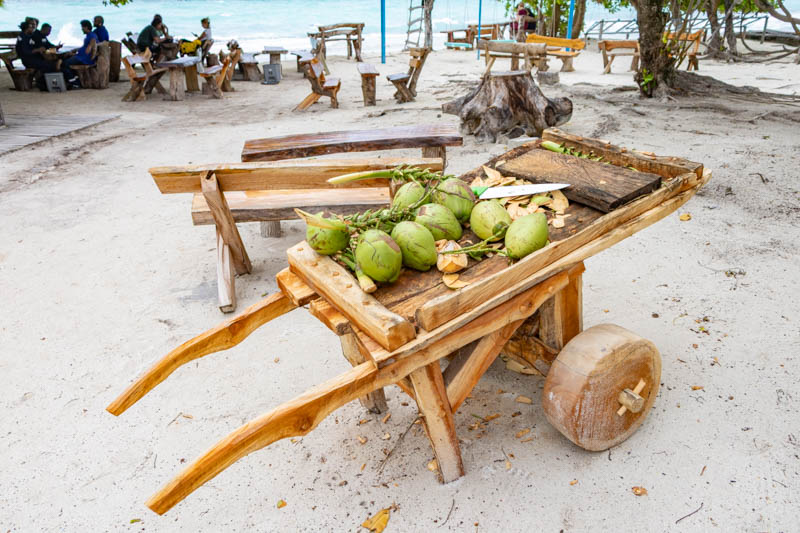 Nach der Walhai-Exkursion sind wir noch ein bisschen über die Insel marschiert um die ansässigen Flughunde ausfindig zu machen. Dabei kamen wir an einem Kokosnuss Stand vorbei: